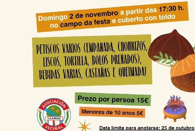 Vilapene celebra o seu magosto o domingo 2 de novembro con música, petiscos e queimada