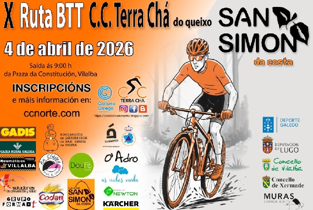 A Ruta BTT Terra Chá San Simón da Costa percorrerá o 4 de abril tres concellos