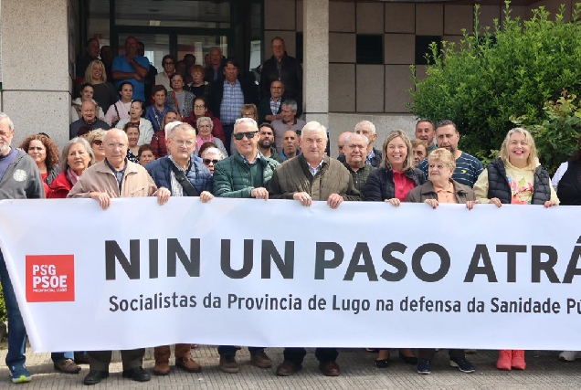 O alcalde de Pol, Lino Rodríguez, encabezou a concentración diante do centro de saúde xunto a representantes socialistas da contorna