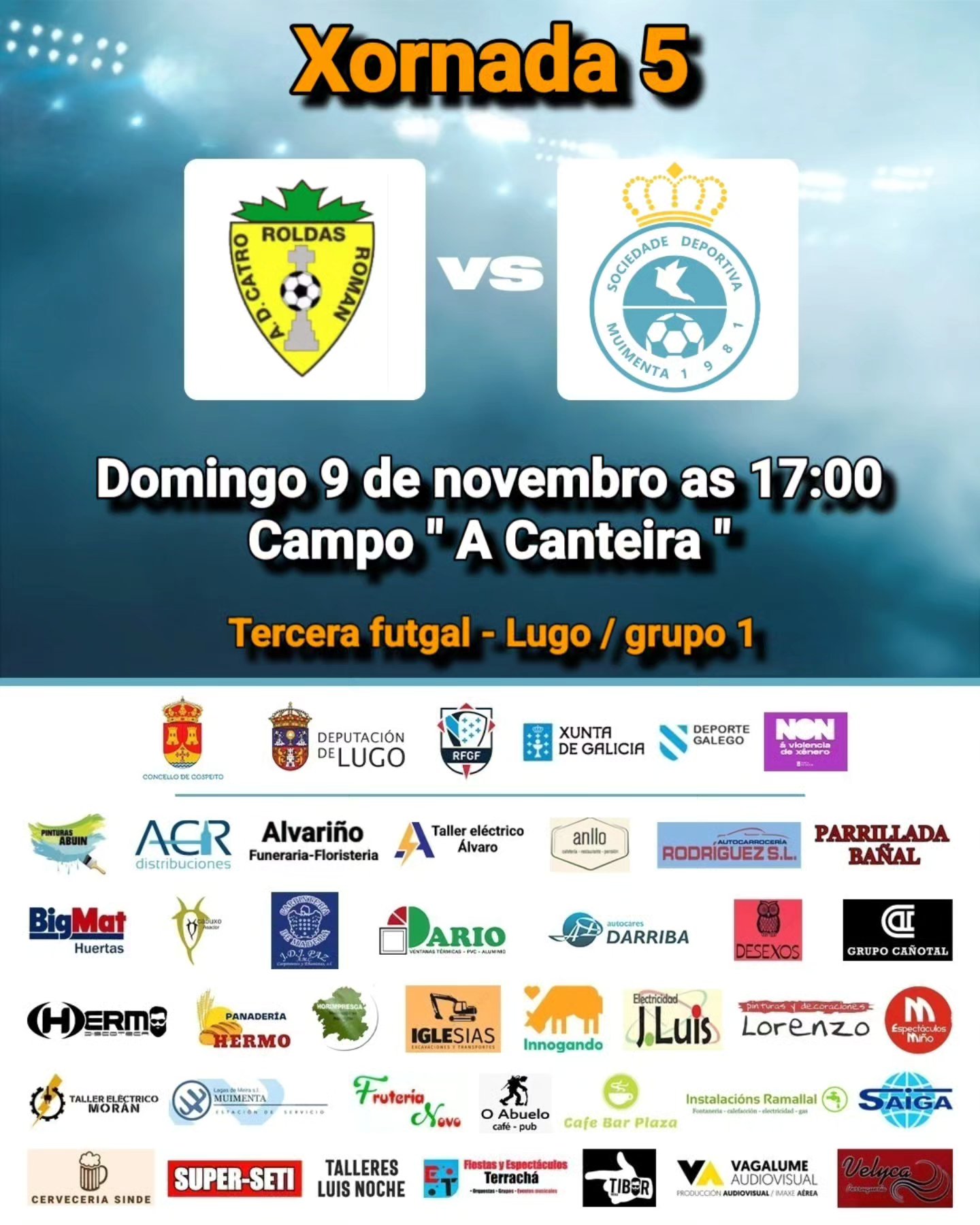 El Muimenta SD afronta una salida exigente a Román para medirse al A.D. Catro Roldas, actual líder. El encuentro se disputará este domingo a las 17.00 horas en el campo A Canteira, un escenario en el que el cuadro local suele mostrarse sólido.