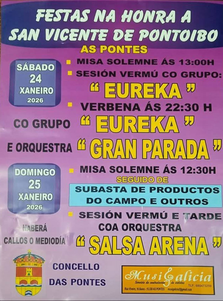 La parroquia de Pontoibo, en As Pontes, celebrará los días 24 y 25 de enero las fiestas en la honra a San Vicente con un programa que combina actos religiosos y propuestas festivas, como la tradicional subasta de productos del campo.